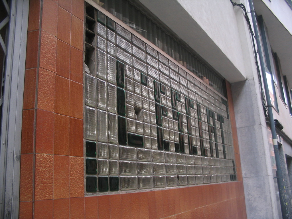 Further down Ricart near El Paral·lel, a glass pixelfont! ESCLAT means "outburst" or "explosion." Hmmmm.