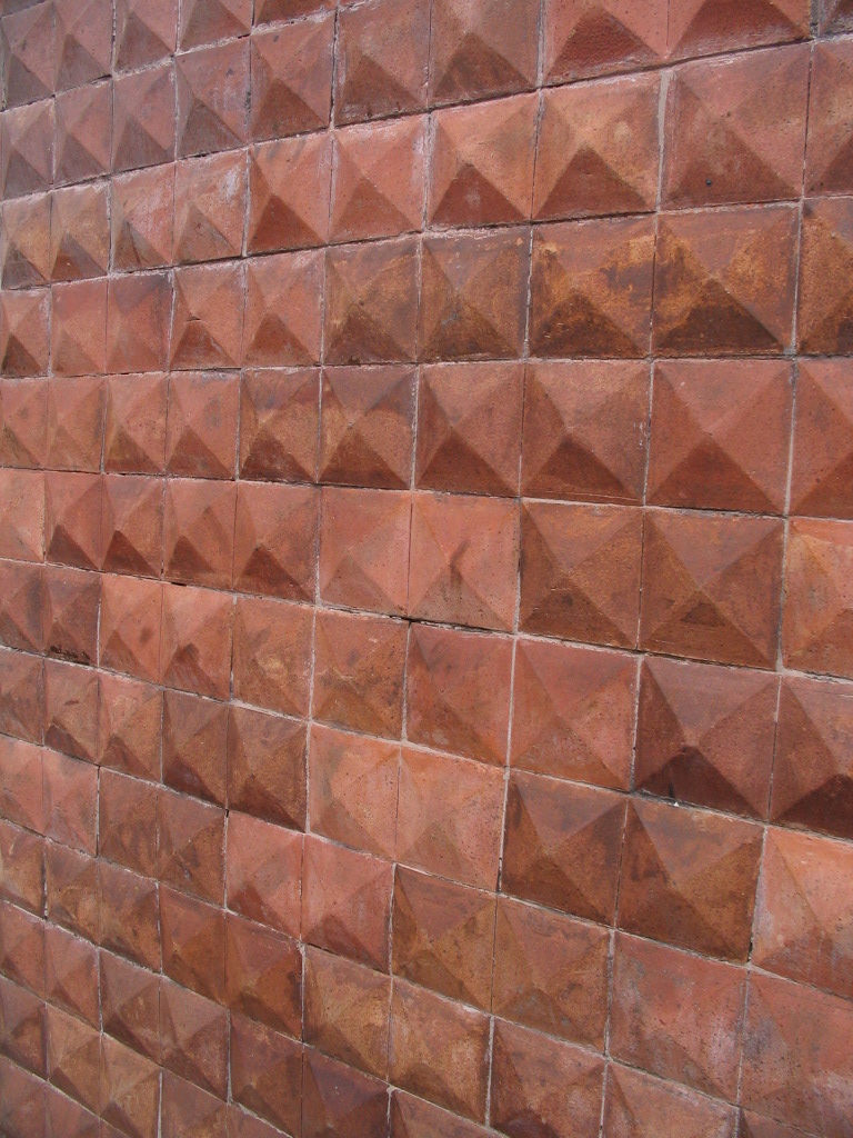 Pyramid bricks at Paral·lel and Manso. These cover the full height of this 10-story building.