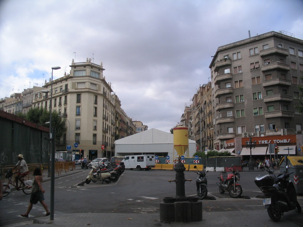 At the Mercat de Sant Antoni (at far left) and the boundary of El Raval, formed by the Ronda de Sant Antoni straight ahead.