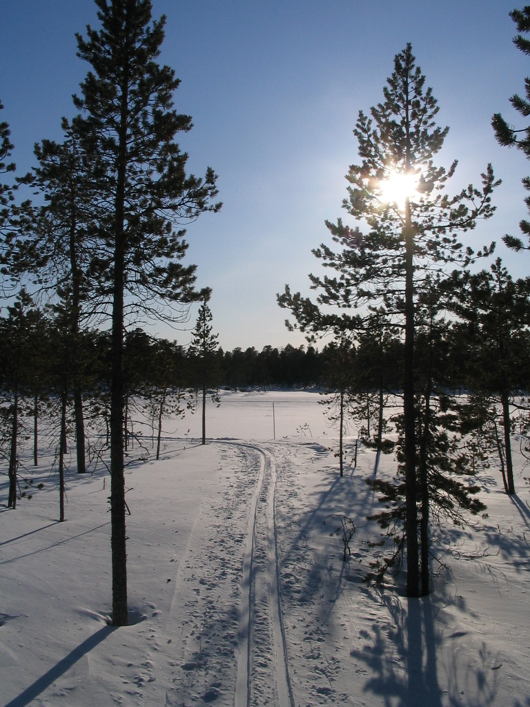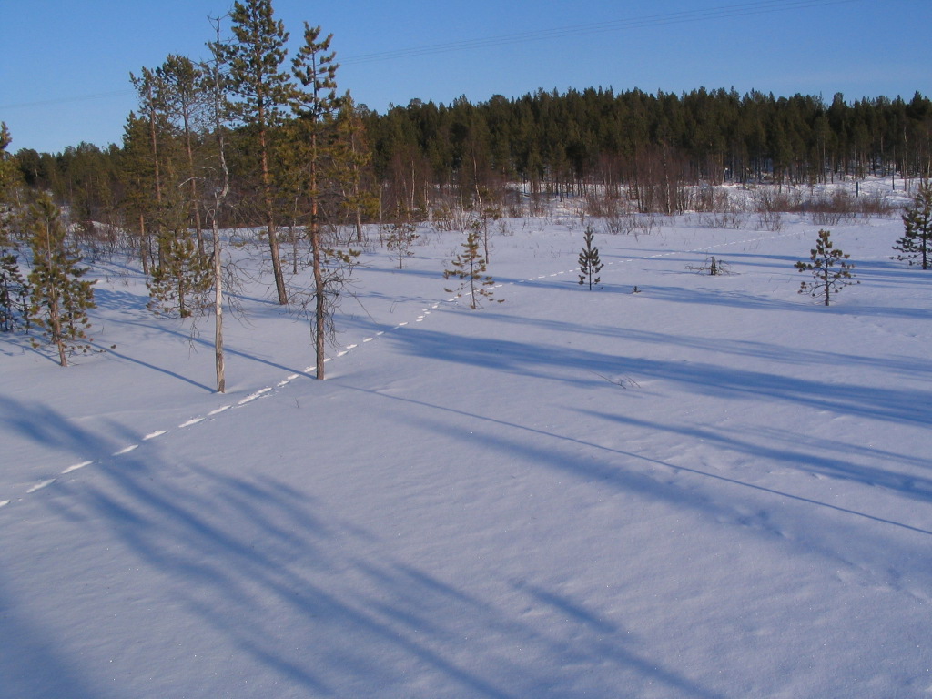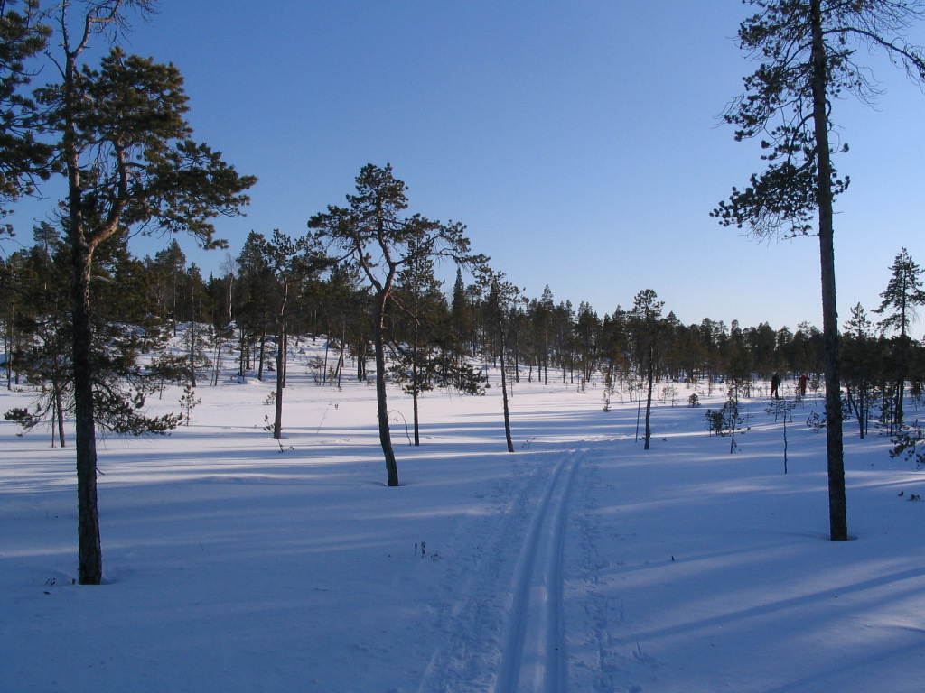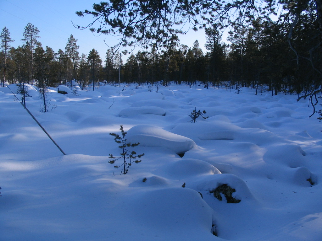 Back through the young forest, with Inarijärvi visible straight on in the distance, I think.