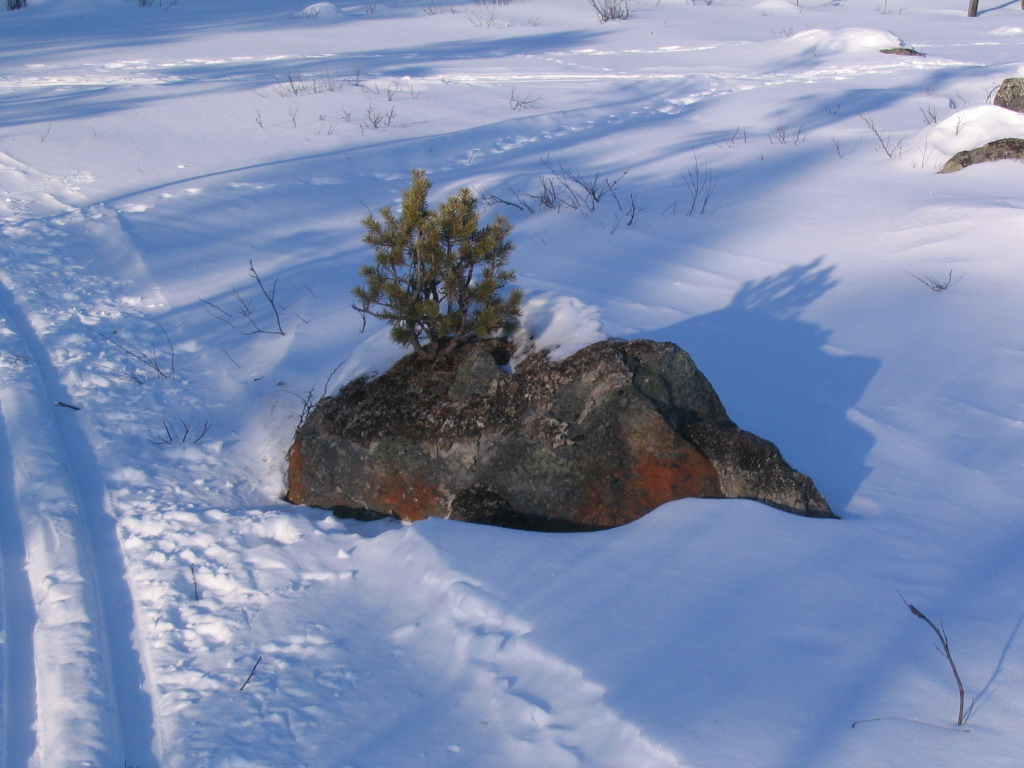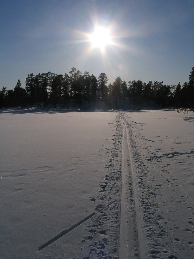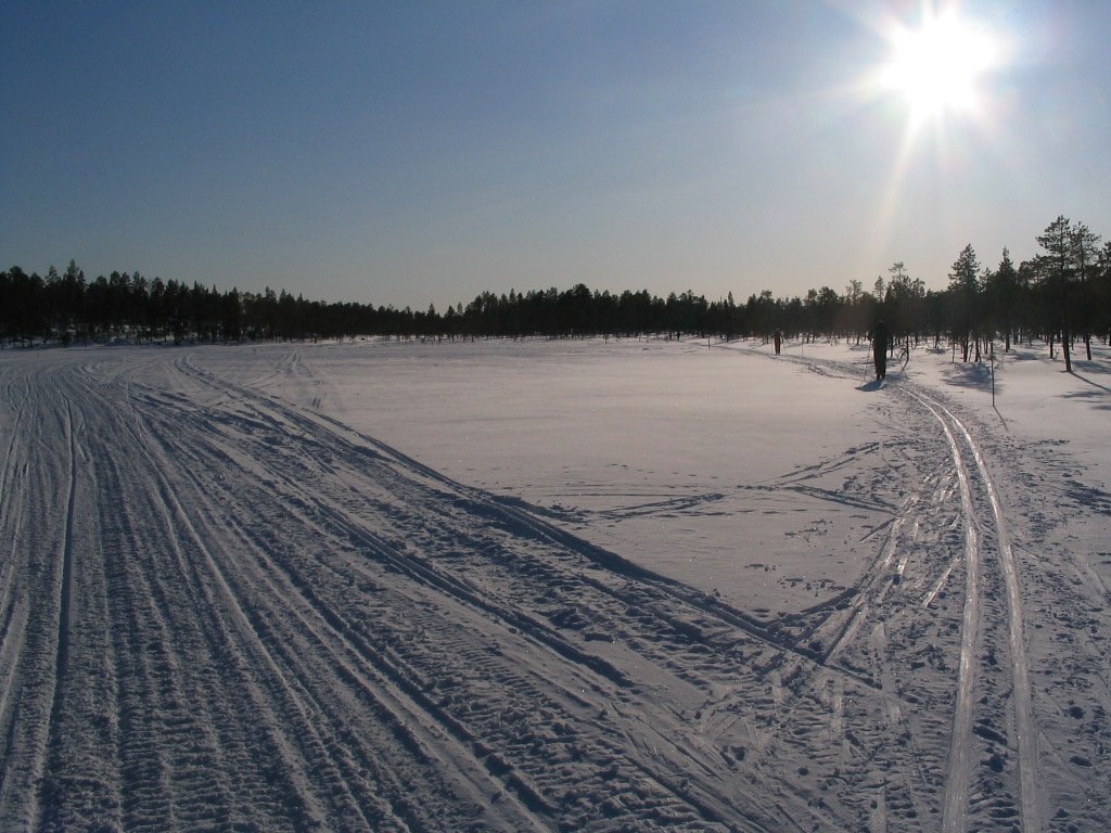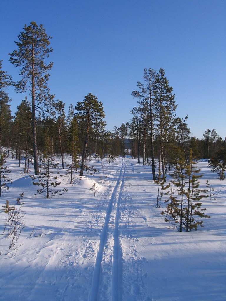 Back through the young forest, with Inarijärvi visible straight on in the distance, I think.