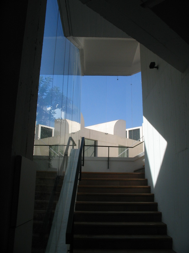 The landscape is well-integrated with the museum building, with sculptures arrayed around the gardens and courtyards. This one nearly dissolves into the sky.