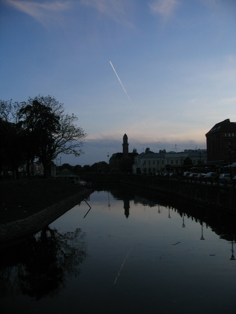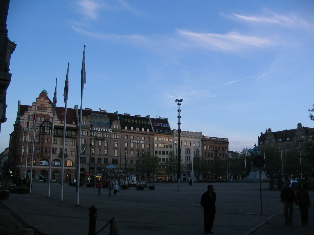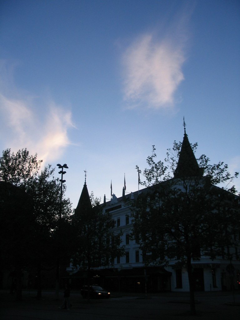 A nice wash of cirrus lighting up the view from the bridge (Petribron) over Östra Hamnkanalen that led back to the Centralstation. Note that the sun's azimuth here is pretty much due northwest.