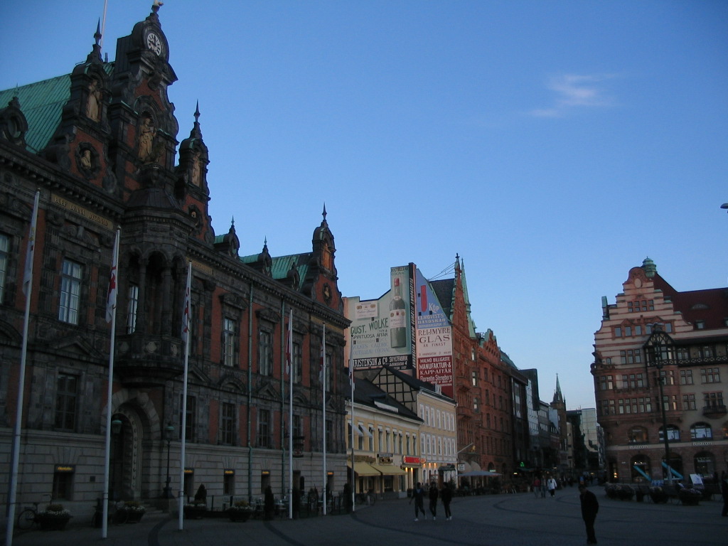 This is Stortorget, the main square of the old city. At left, on the eastern edge of the square, is Rådhuset, the old town hall. Check out those oldskool mural ads on the building beyond.