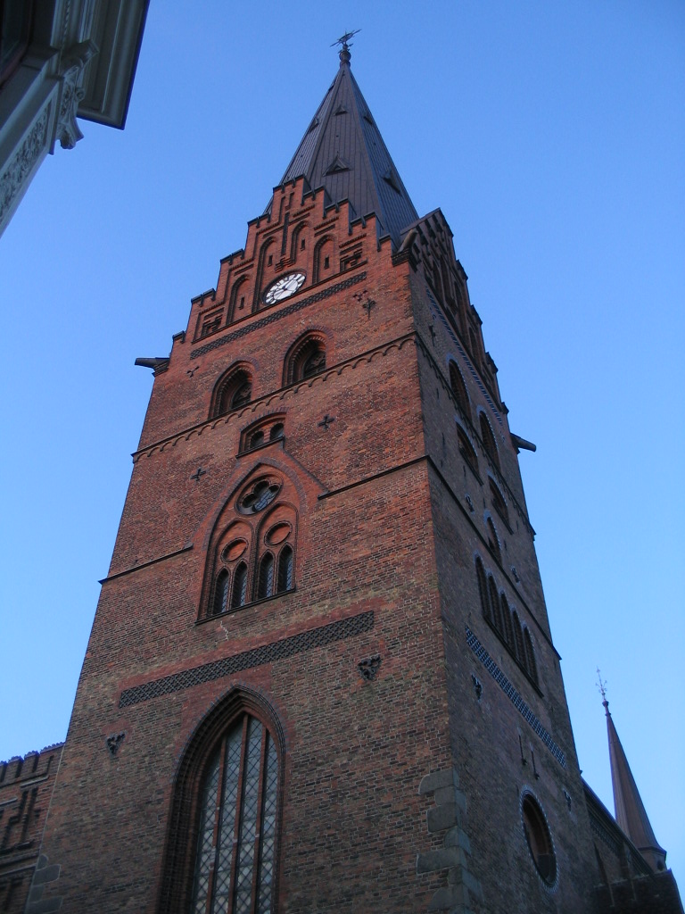 A block away from Stortorget: the main tower of Petrikyrkan, a Gothic church, the building of which was started in the 14th century but which, like many medieval churches and cathedrals, has had a storied construction history since then.