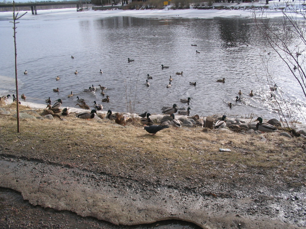 Two pigeons vs. all the ducks of Hämeenlinna.