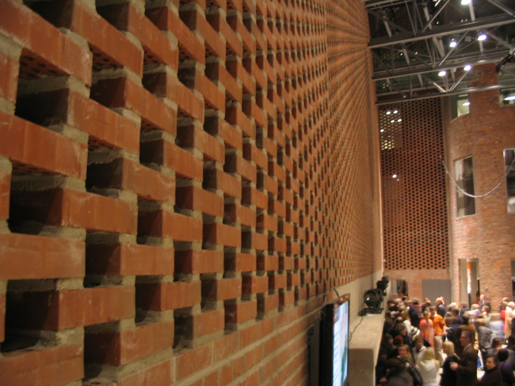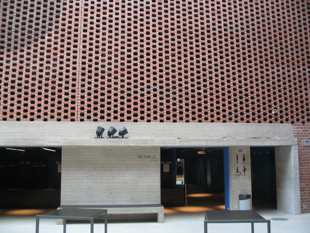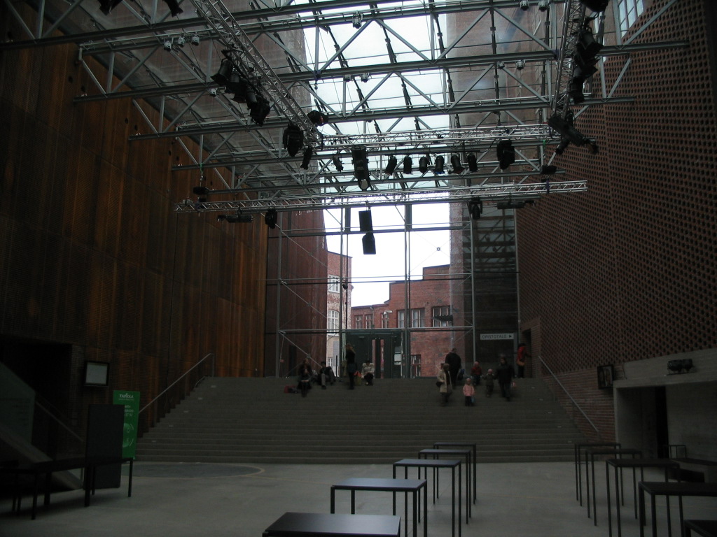 This new atrium was built between existing buildings. The concert hall is behind the Cor-ten wall on the left.
