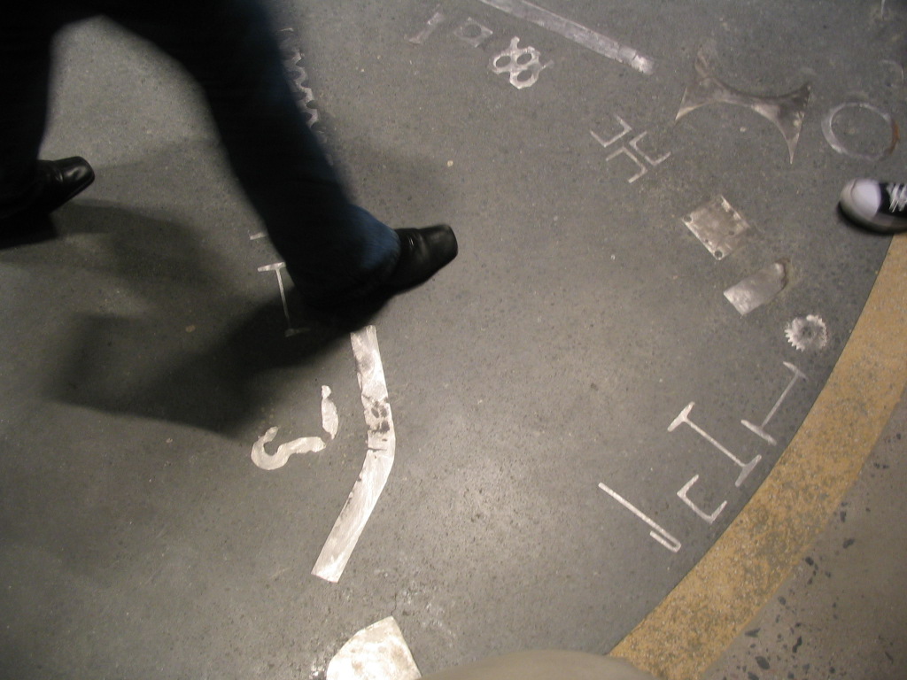 The floor of the atrium has these cool steel insets, including structural members like the I-beams at lower right.
