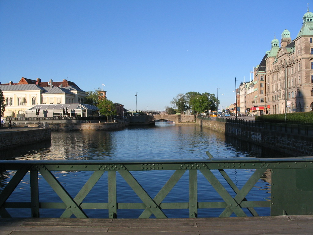 A look over to the edge of the old city center along the south side of the canal, approaching Älvsborgsbron.