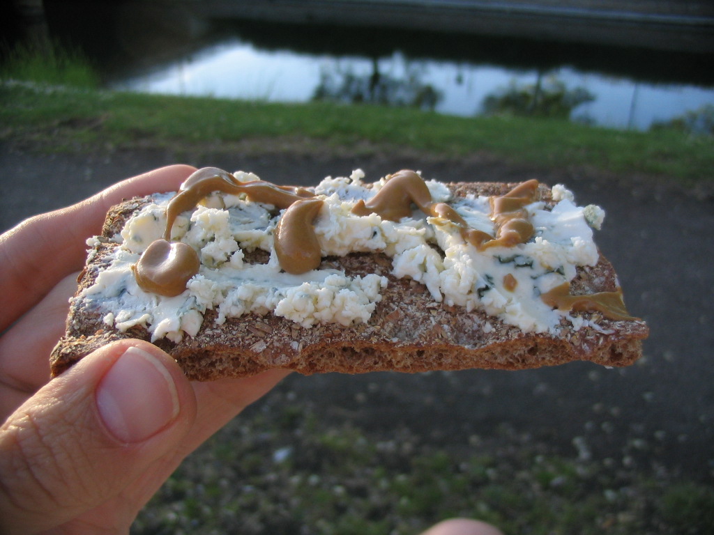 This may be a somewhat alarming apparition, dear viewer, but it was SO TASTY, and the deliciousness was augmented by the idyllic dining location. The cheese was Aura blue cheese that I'd gotten in Turku; it was wonderfully salty and pungent yet, to my delight, lacked normal blue cheese flavor, which I dislike. I look forward to finding more of it sometime.