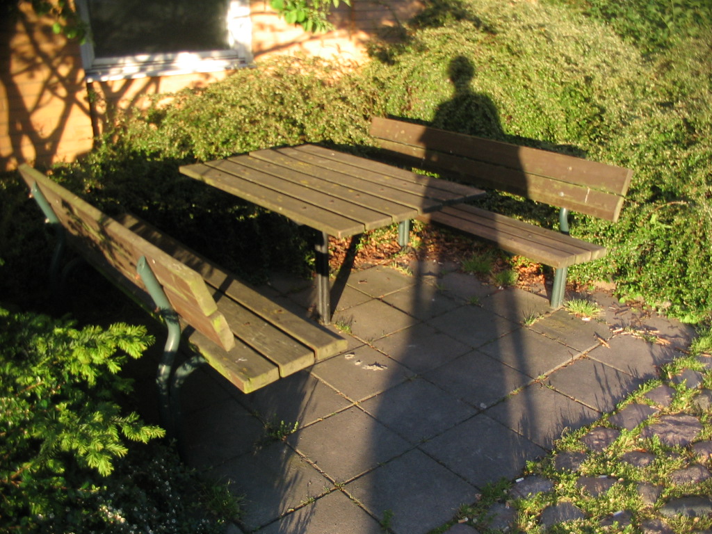 The picnic table that I finished my supper at, having migrated there, gooselike.