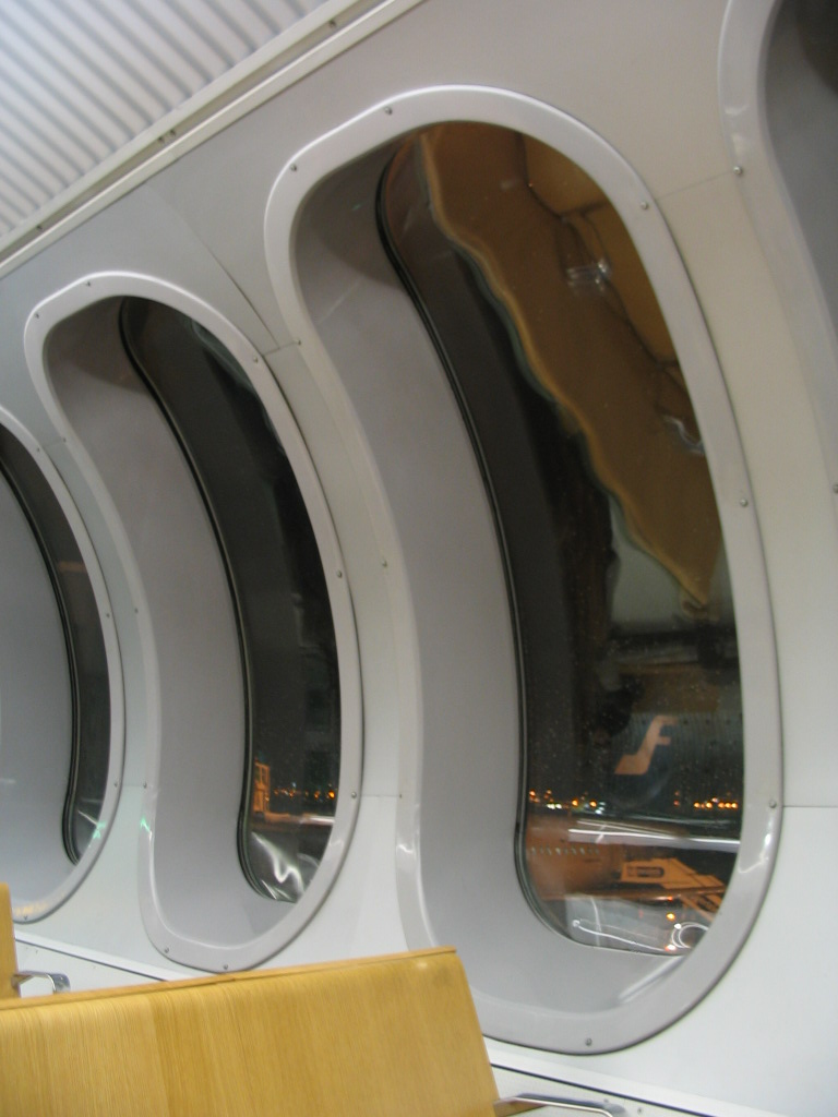 The weird waiting tube at Heathrow, where I waited to board my flight to Helsinki. Oddly airplane-like itself.