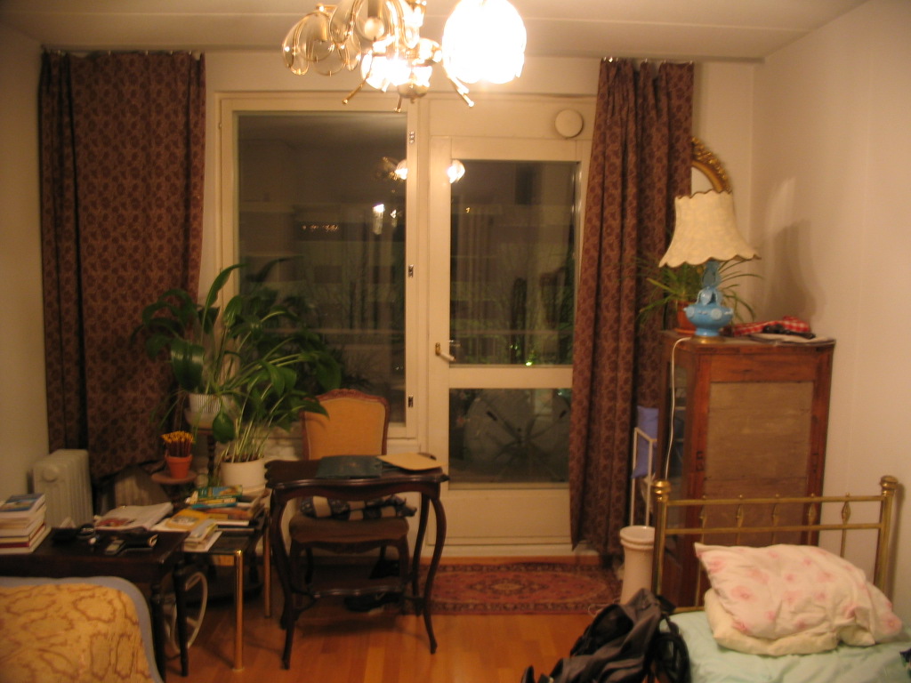 First picture taken in Finland: my bedroom in the apartment on Katajanokka, Helsinki, my bed on the right. It was a rickety setup but turned out perfectly comfortable.
