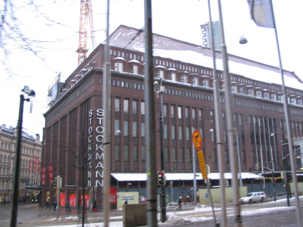 Stockmann, an iconic department store, sits at the nexus of three primary streets: Esplanadi, Aleksanterinkatu ("Alexander St"), and perhaps the most primary of all, Mannerheimintie ("Mannerheim Ave").