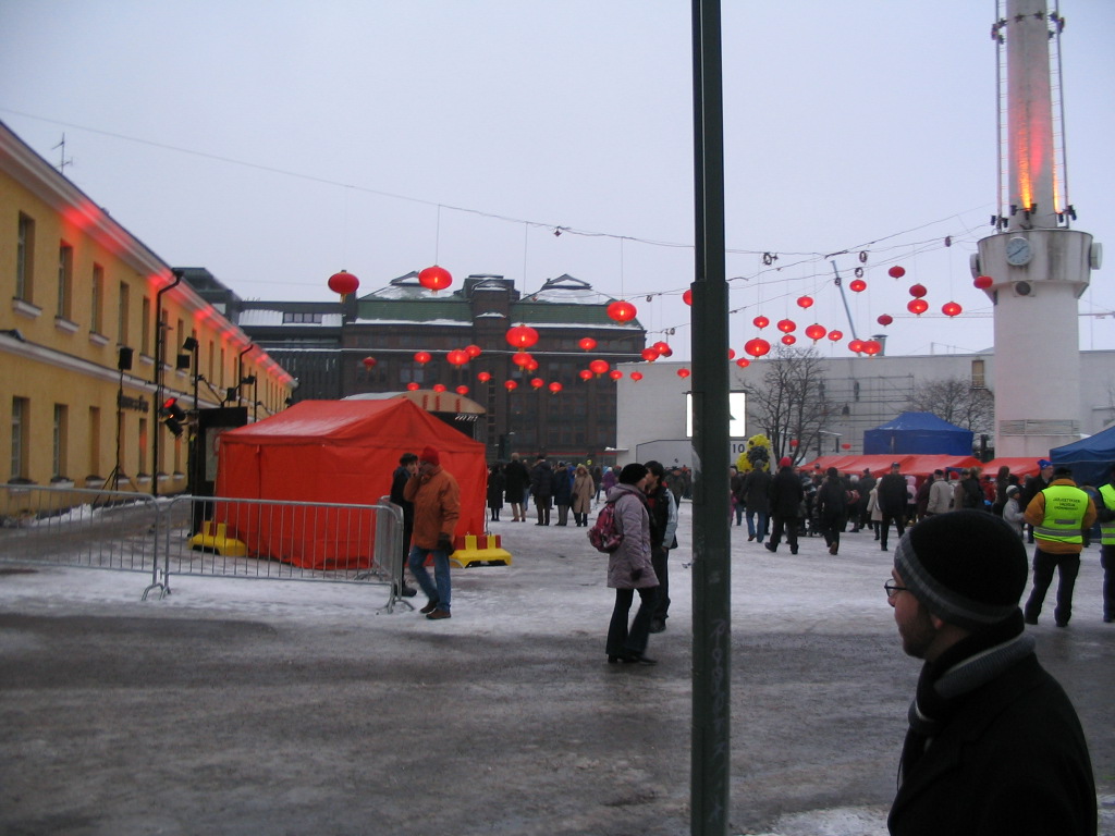 Incongruously but cheerfully, in the square Lasipalatsinaukio, a former marching ground, a Chinese festival was underway (perhaps for Chinese New Year?).