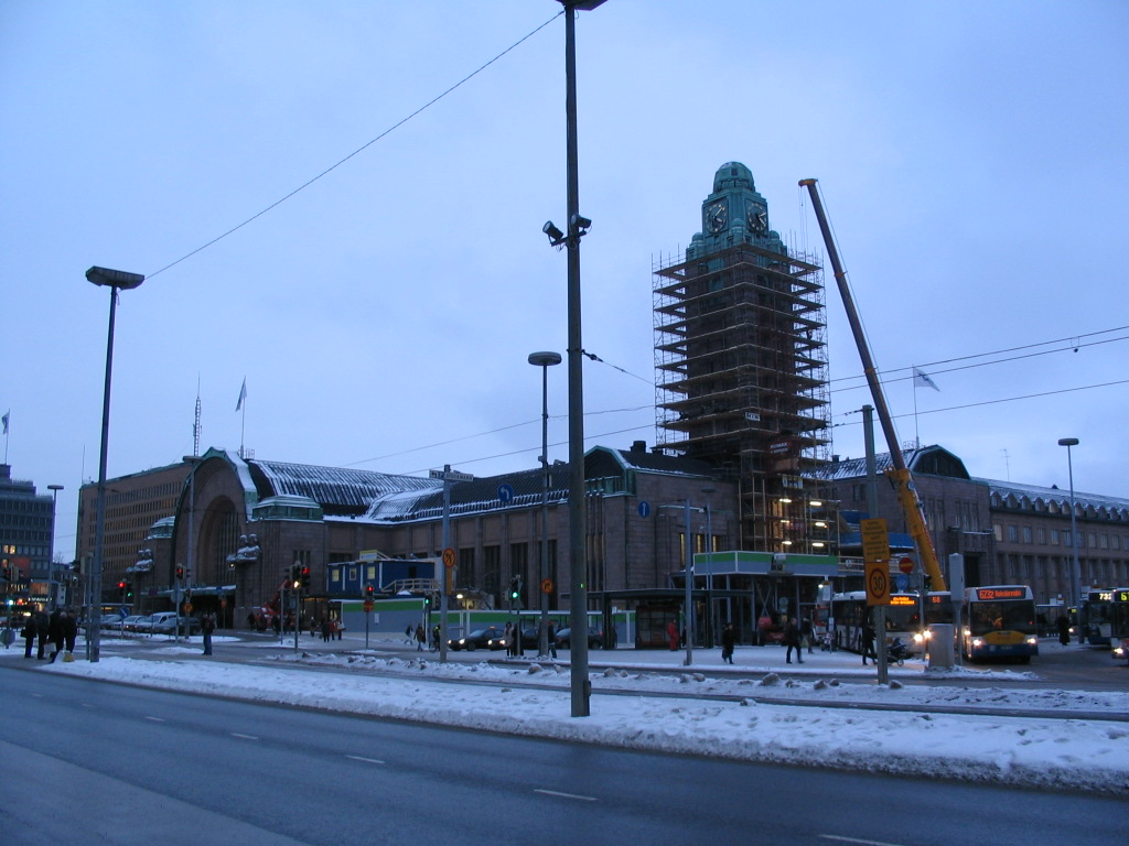 Helsingin Rautatieasema: the Helsinki central railway station, designed by Eliel Saarinen, its tower under renovation all through the semester, unfortunately.