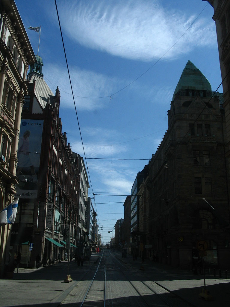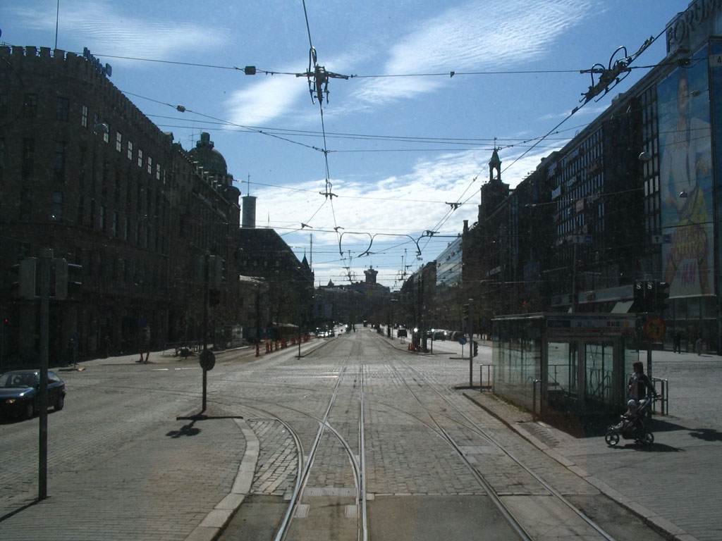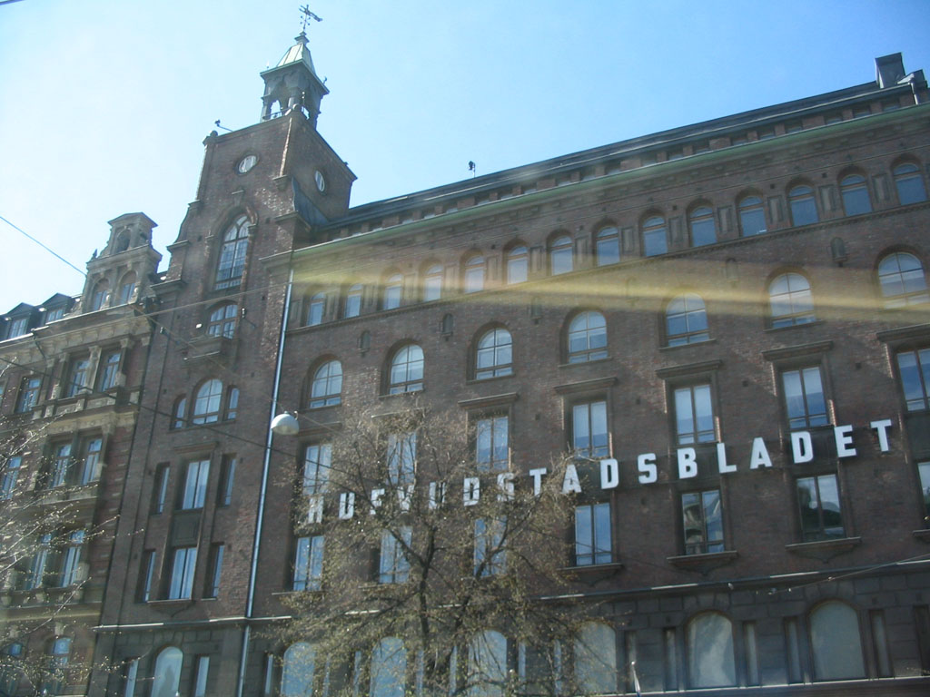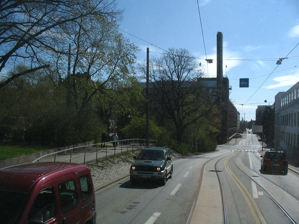 Out onto Mannerheimintie and past the Hufvudstadsbladet building. Still so cool!