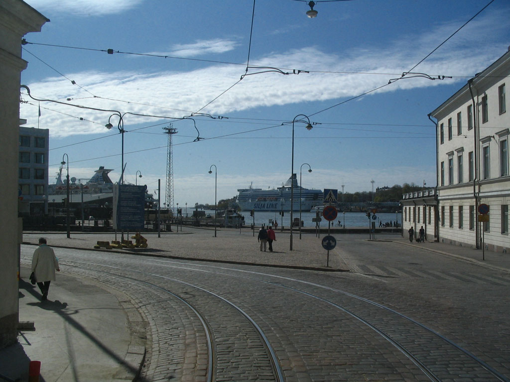 One more glimpse of the icebreaker twins across the water, just after turning onto Aleksanterinkatu.