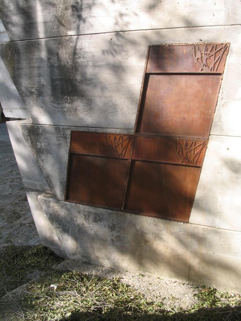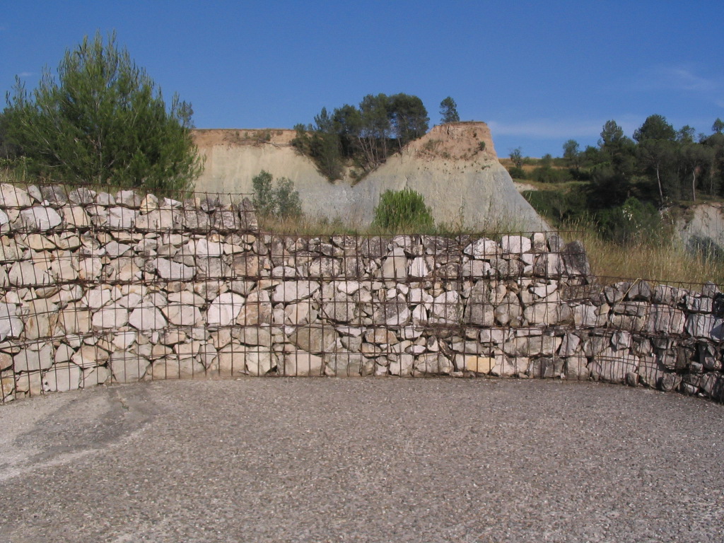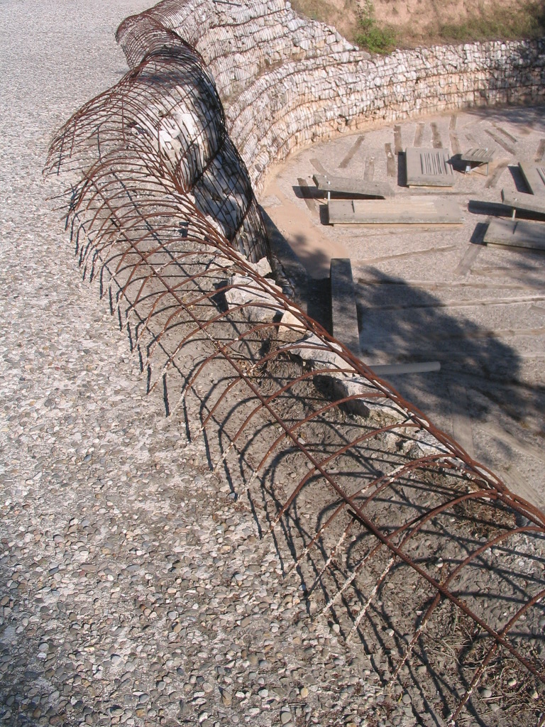 The gabion separates the lower and middle level here as well as bounding the upper edge of the middle level.