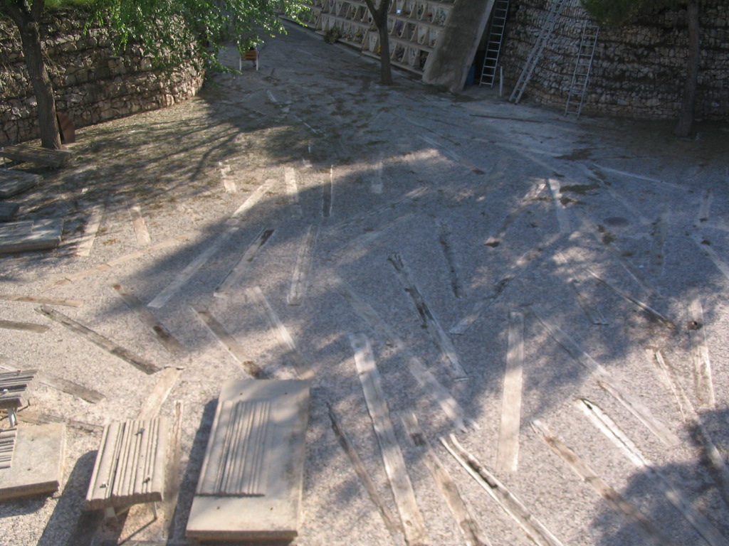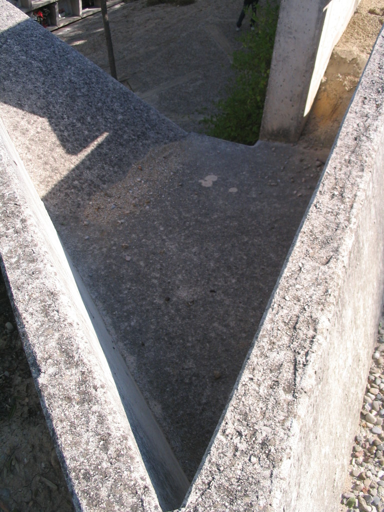 The lowest level is the main walk, representing the "river of life" idea if I understand the descriptions correctly, and it is flanked by loculi on both sides.