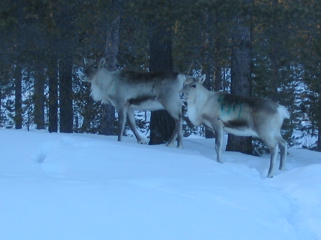 Graffiti'd reindeer. (These marks are like brands, showing which herdsman the animals belong to.)