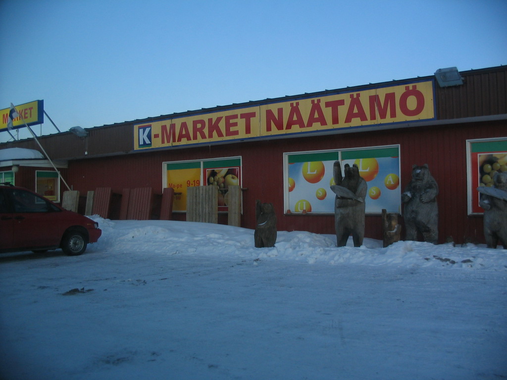 We stopped at this supermarket/gas station at Näätämö (which seemed to be about all there is to Näätämö), just before the border. What a bunch of big cuties off to the right there!