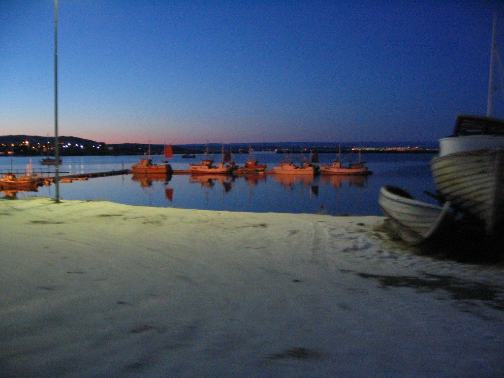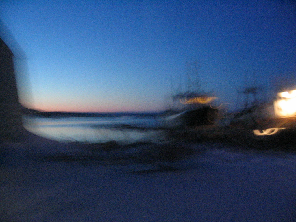 Again at the harbor; the village is across the water to the left, and the city of Vadsø is across the water to the right, its lights visible here, much further away.