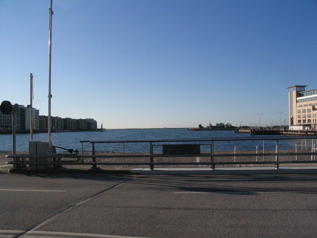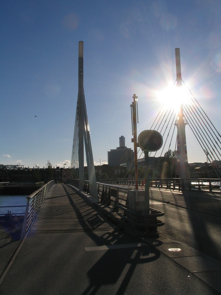 Back at the head of the harbor is this bridge, Suellsbron, leading back to Centralposthuset; note the rails to the side.