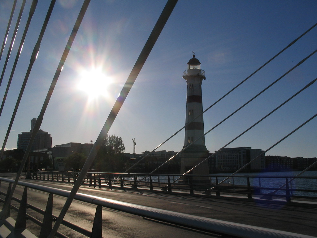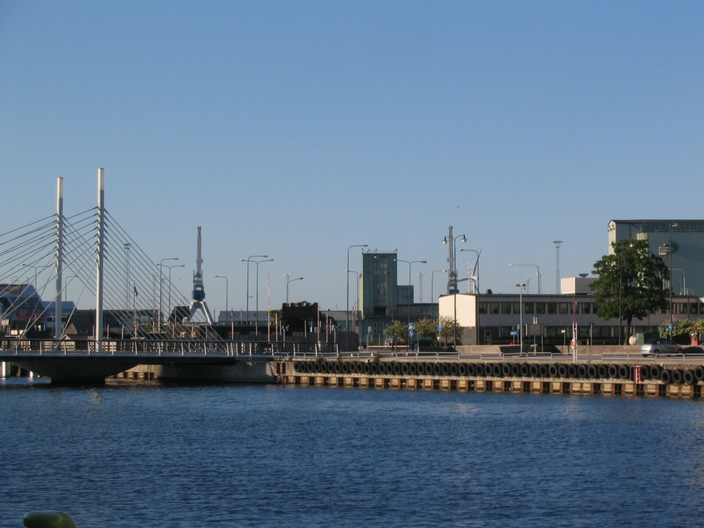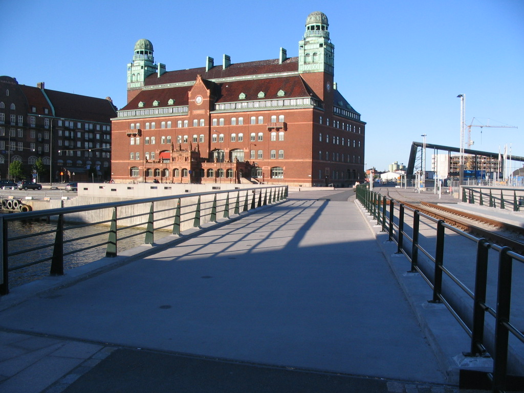 The Centralstation and Centralposthuset lie at the southeast corner of Inre Hamnen (Inner Harbor), the oldest part of Malmö's harbor. Spanning the mouth of Inre Hamnen, where it empties into Yttre Hamnen (Outer Harbor) to the north, is this attractive suspension bridge, Universitetsbron. I crossed over it to return to the city center on the other side.