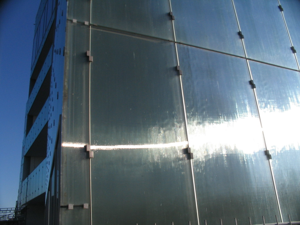 Along the western edge of Inre Hamnen, along Hjalmarekajen, are a bunch of large new buildings, including this one with interesting textured-glass skin that's called Orkanen ("Hurricane"), completed in 2005. It's one of the main buildings of Malmö University (Malmö hogskola).
