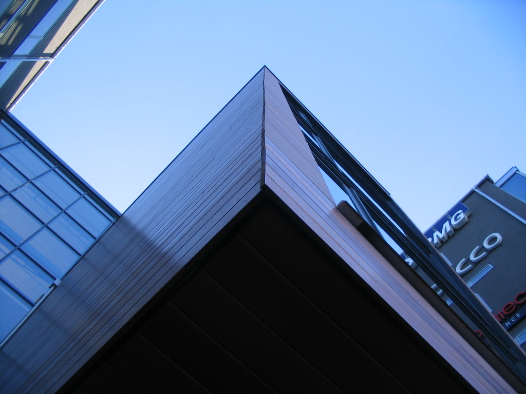 This appears to be a commercial office building. Nice sheer wood detailing.