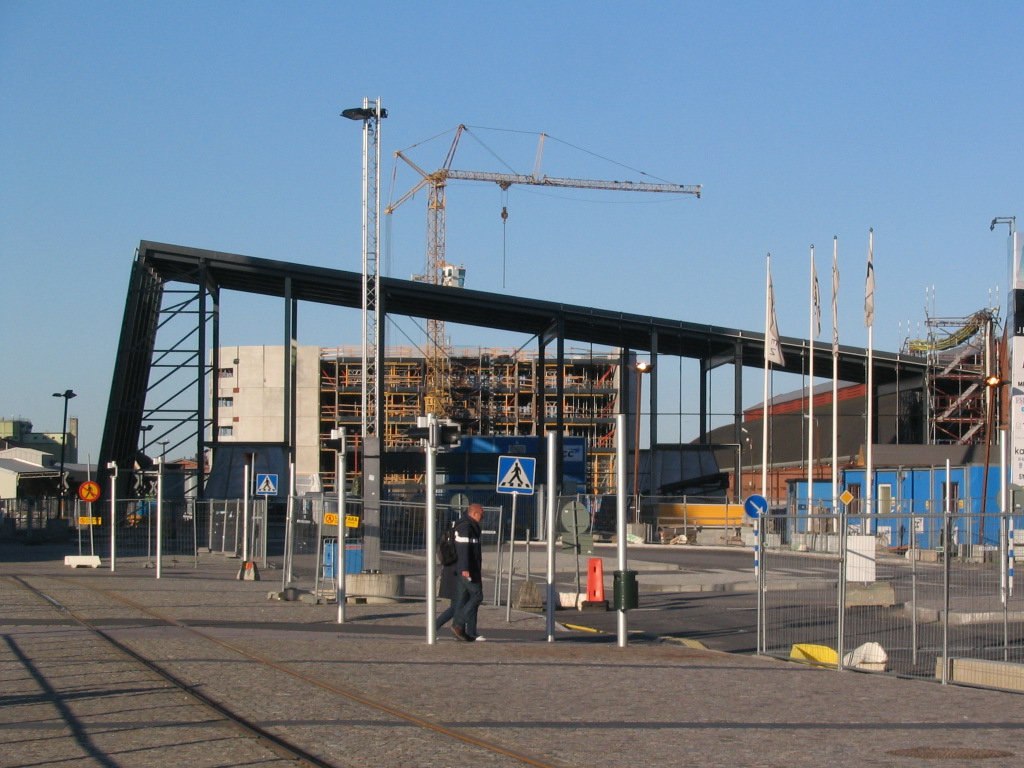 The skeleton of an addition to the Centralstation, under construction here, that now serves as the entrance to the tunnel to Copenhagen.