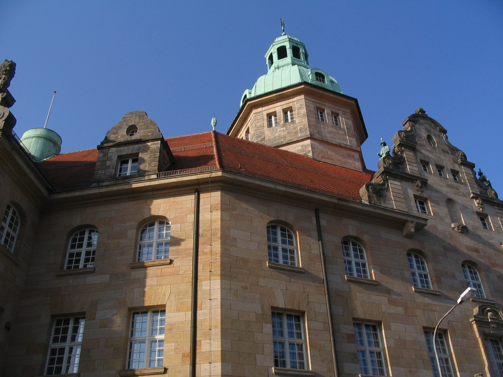 Downstream, an end view of the Altes Rathaus over yonder. I'm curious about that shed-roofed building just in front of it.
