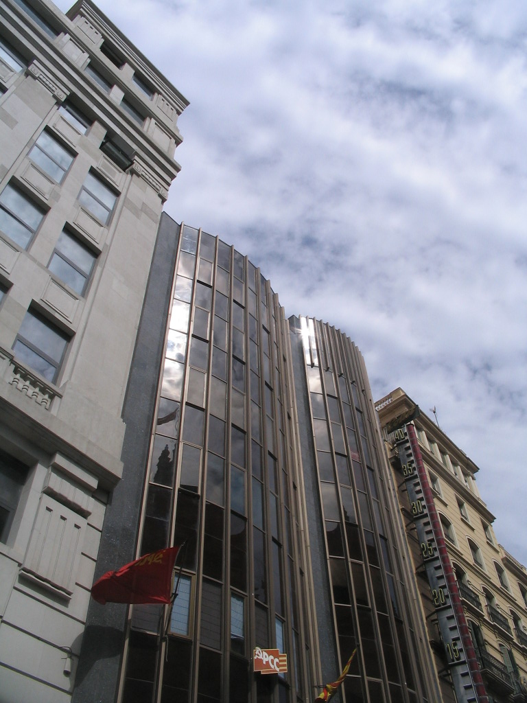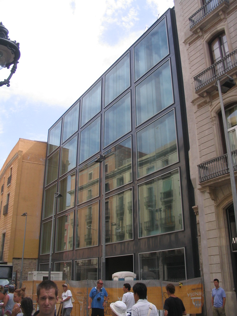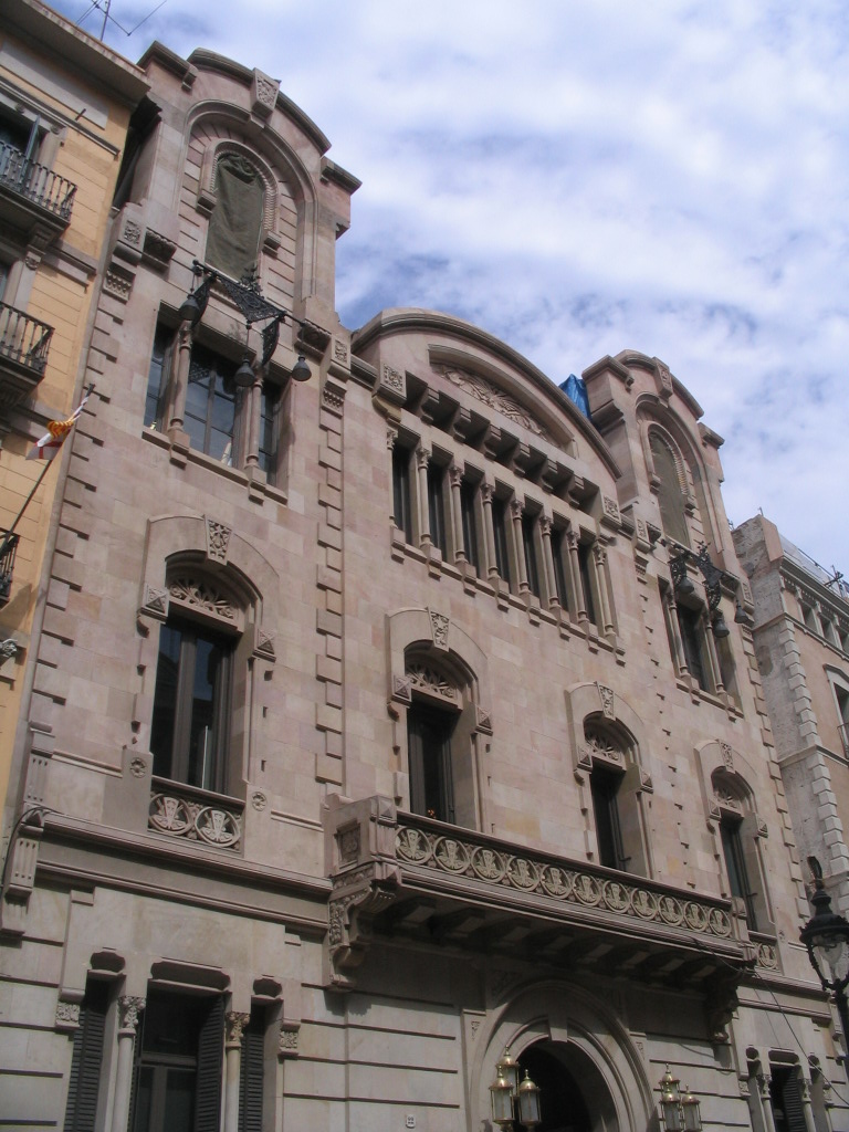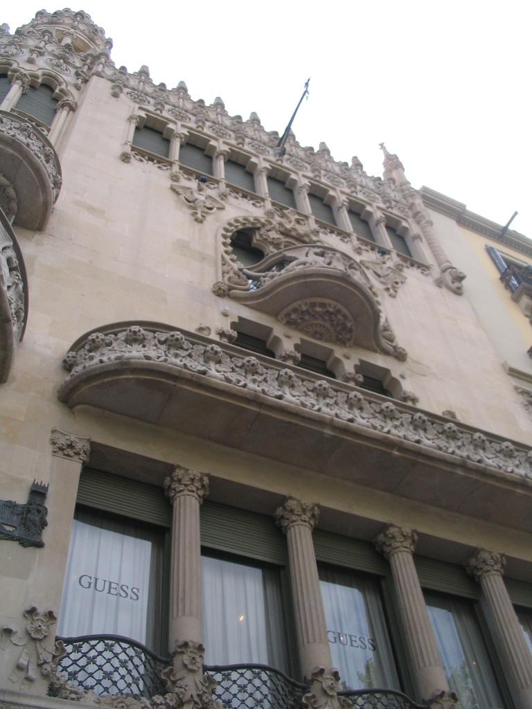 A decidedly non-eclectic façade on Av. del Portal across from Carrer de Montsió.