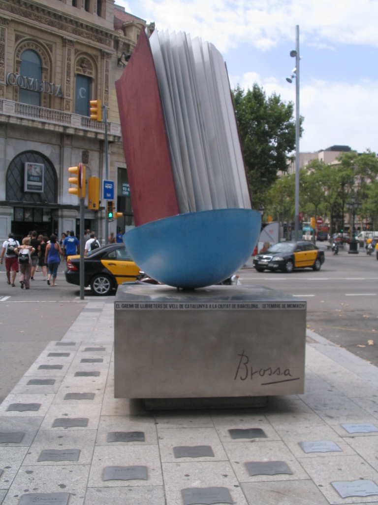The Monument al llibre (Monument to the Book, 1994), by the poet/playwright/artist Joan Brossa, resides in the Gran Via median.