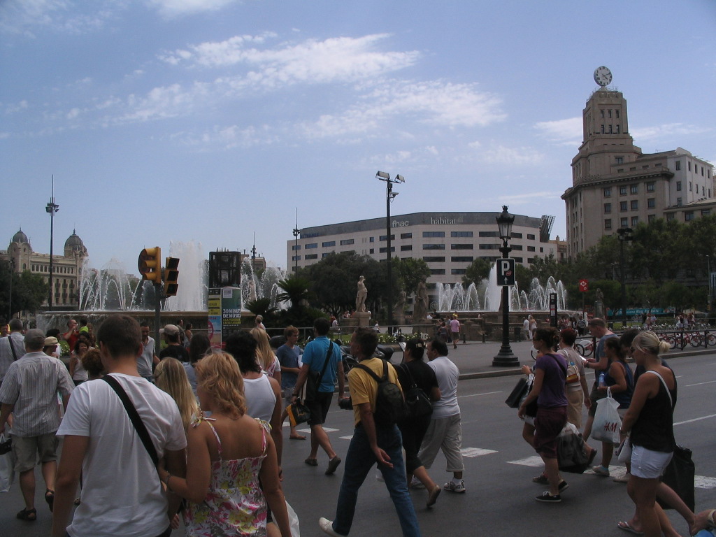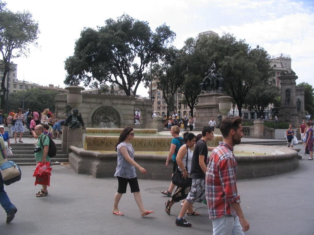 Crossing to the interior of the Plaça and looking across it. The Plaça de Catalunya is considered the very center of Barcelona and is certainly the most central interface between the Ciutat Vella and the Eixample.