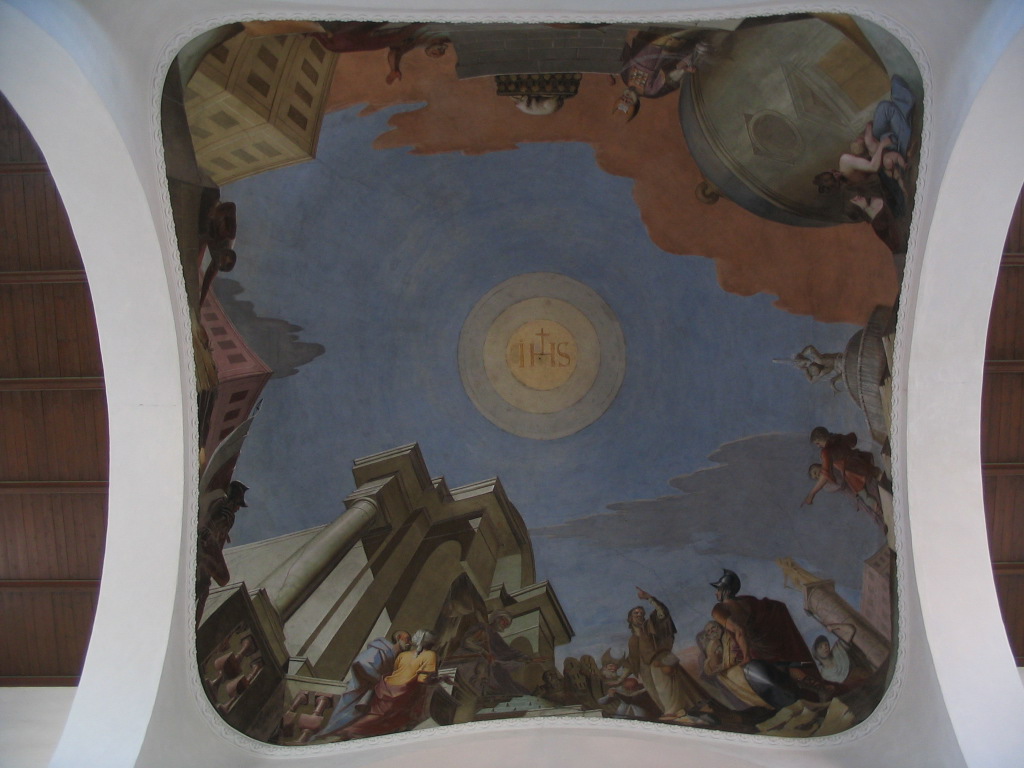 A really neat deep-perspective mural in the apse. Presumably this is also a baroquification; I'm glad it was left in place.