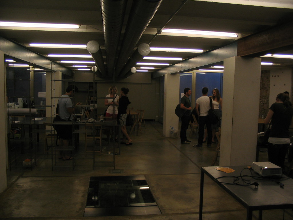 Back at our studio space, complete with glass floor section and fleet of ducts.