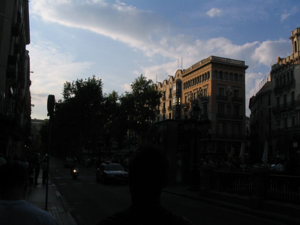 Gibbs over Plaça Reial in the late sun on the way home. Studio took place on a rather Mediterranean schedule, starting around 10, I think, and going till about 7PM.