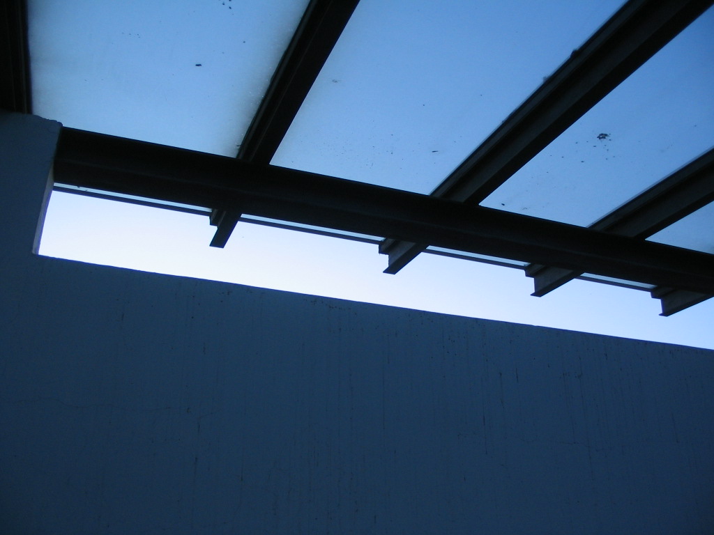 The twilight through the stairwell roof.