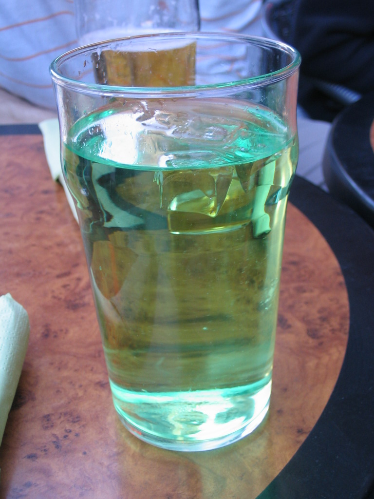 I think the place we ended up eating at was called Food. I had apple-flavored soda, maybe? The color was enticingly weird.