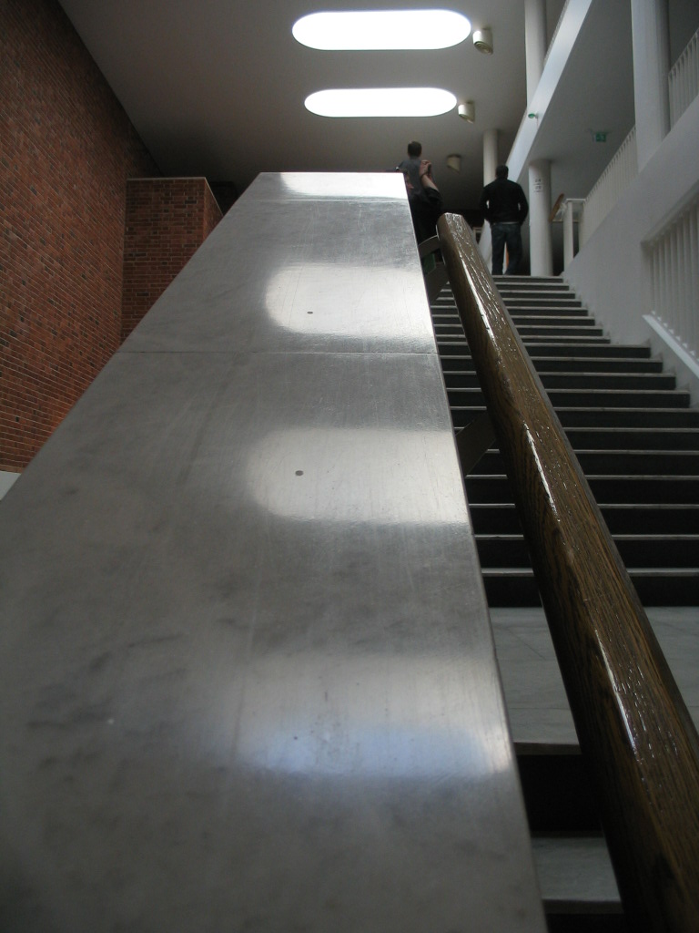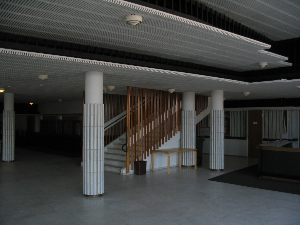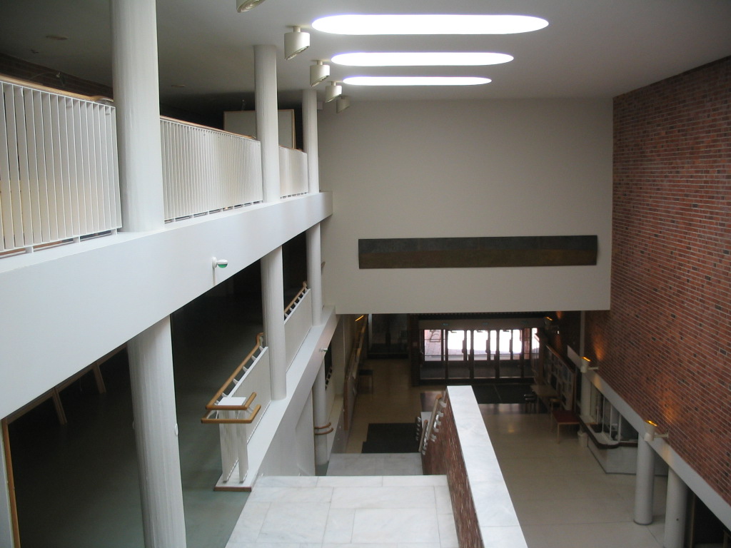 Some instantly recognizable Aalto details in the foyer of the main building.