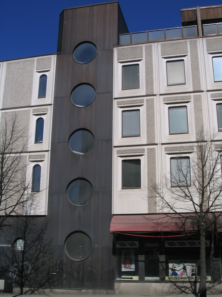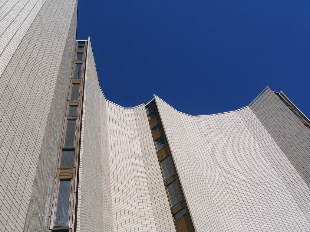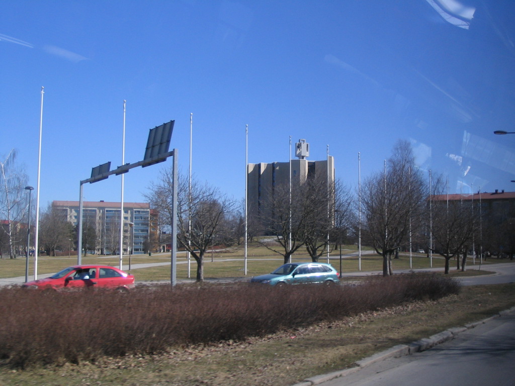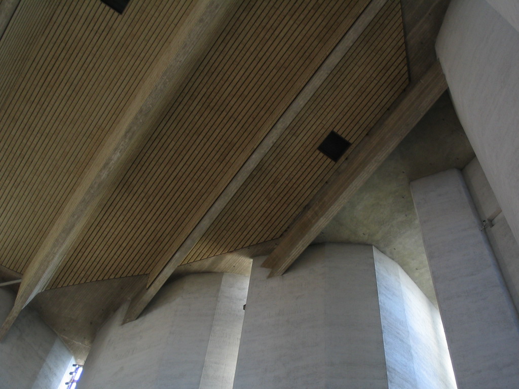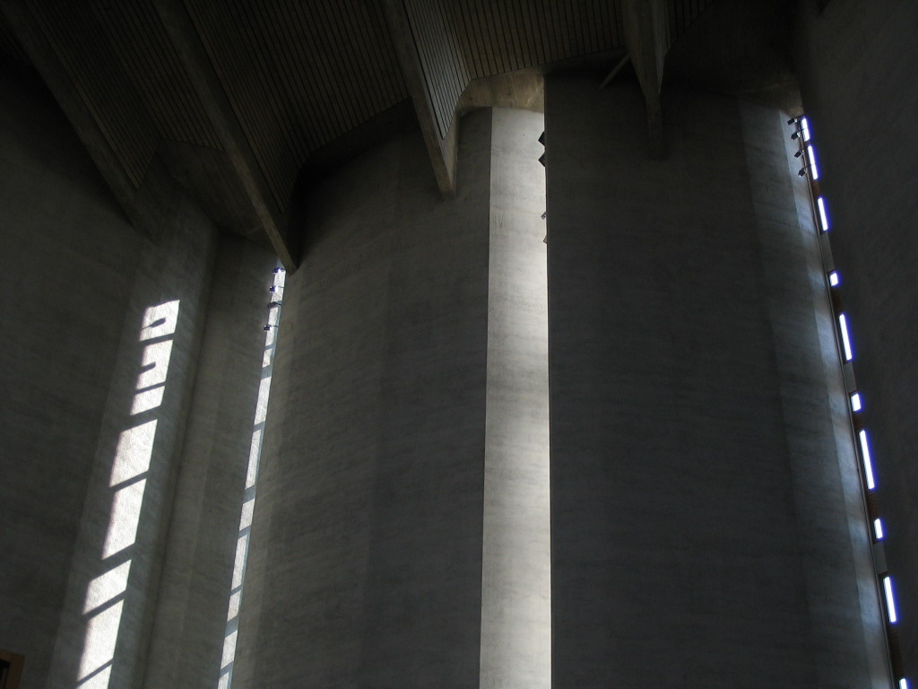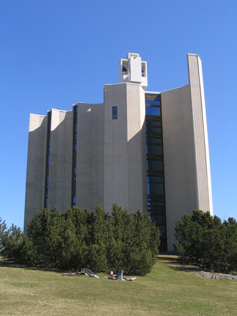 Another animal-shaped building by the Pietiläs, the Kaleva Church (which in plan resembles a fish, i.e. the ichthys symbol, but spikier), was our next stop. It was completed in 1966. It is situated in the middle of a park (Liisanpuisto) ringed by midrise housing blocks.