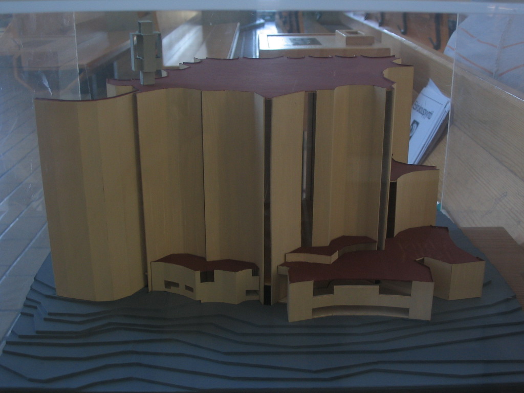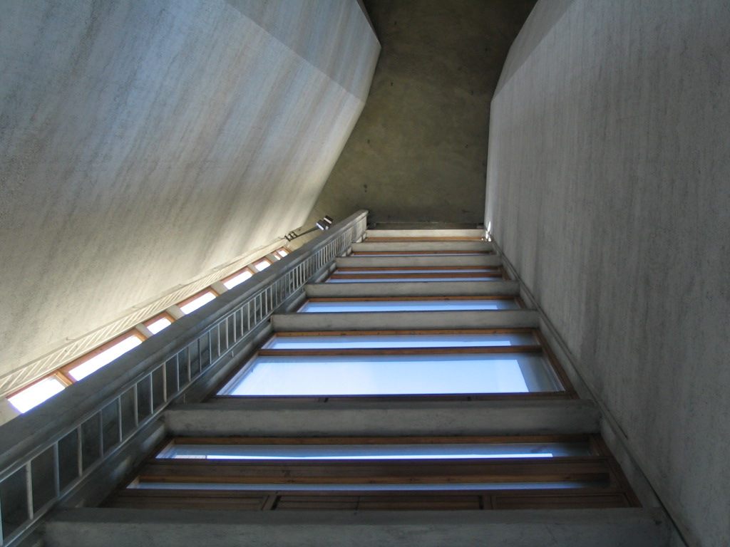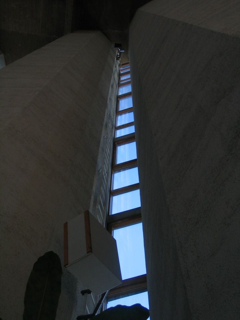 The volume of the church is basically just the plan vertically extruded, but it's so tall that that's quite an effective strategy, especially given all the curves of the walls. The slight modulations of color in the reflected light on the wall here are quite nice.