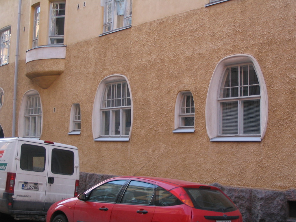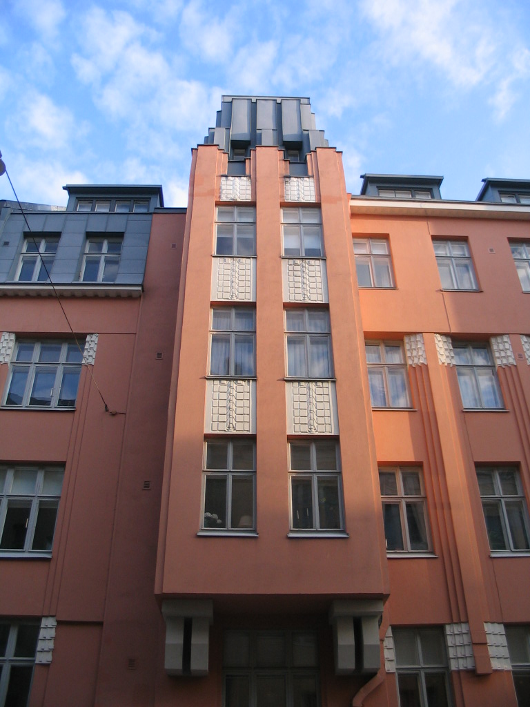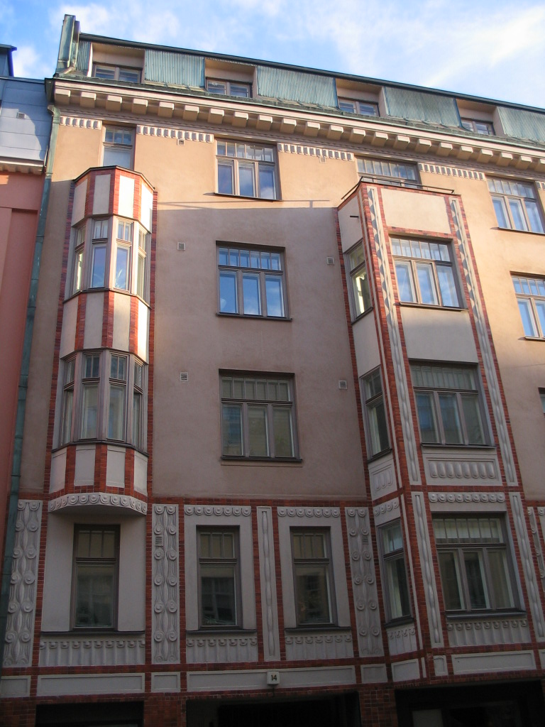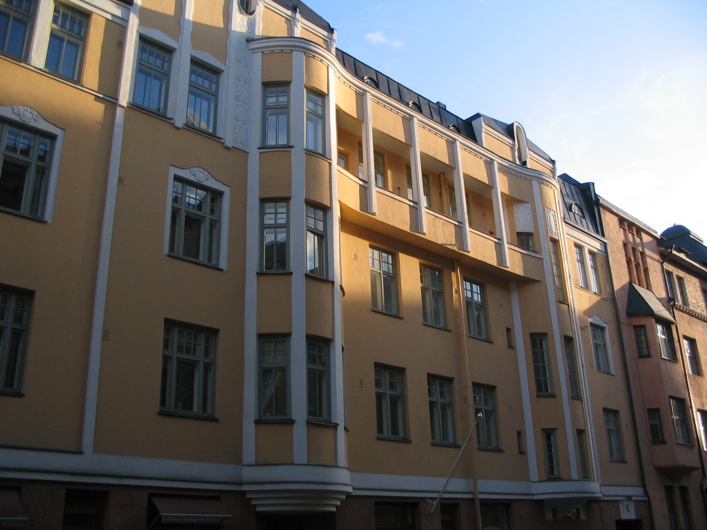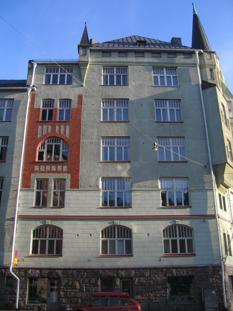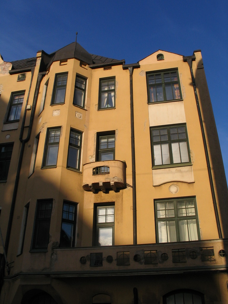 The name of this building is Eol; it was also designed by Gesellius-Lindgren-Saarinen. That balcony is impressively beefy.