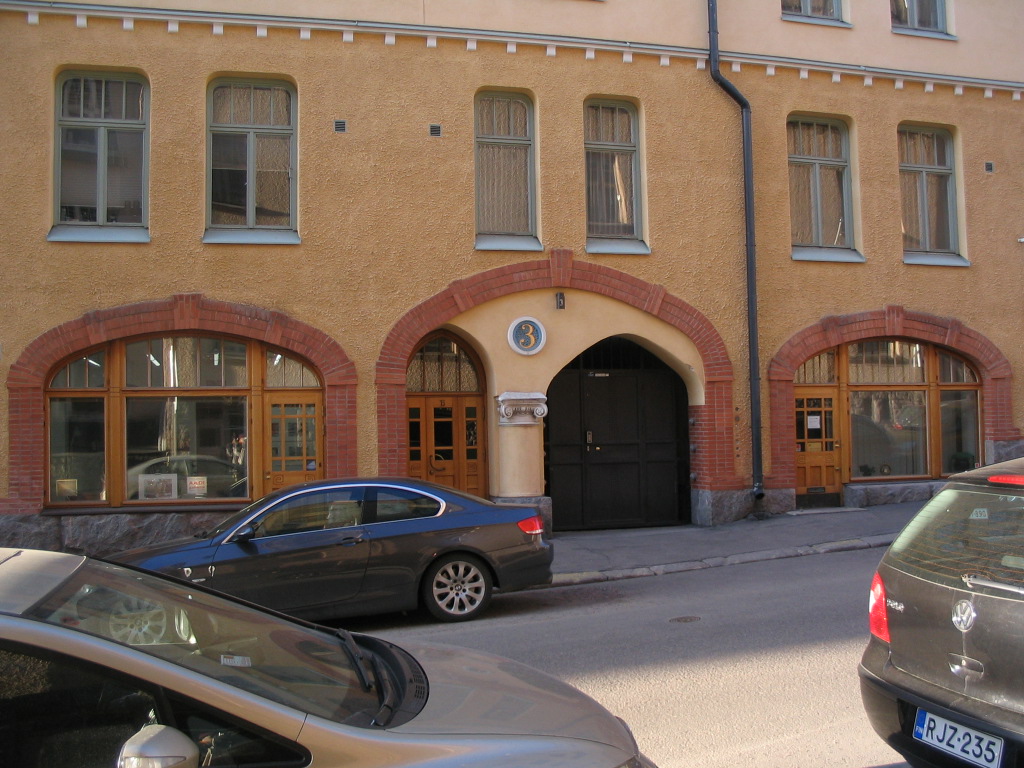 This is, I think, the inland street face of Wellamo, along Vyökatu (Belt St).