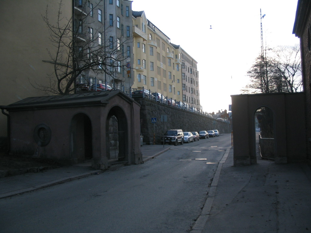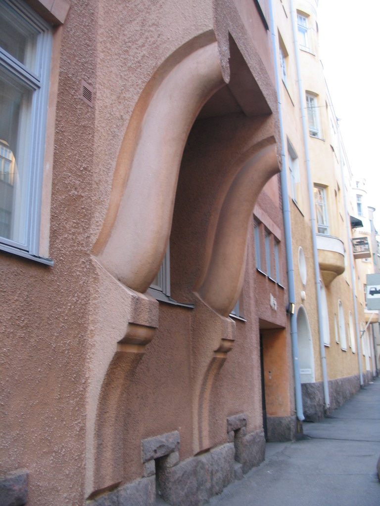 A mysterious portal along the lower part of Laivastokatu. The entrance to the Wellamo restaurant is just behind the left-hand piece of the portal.