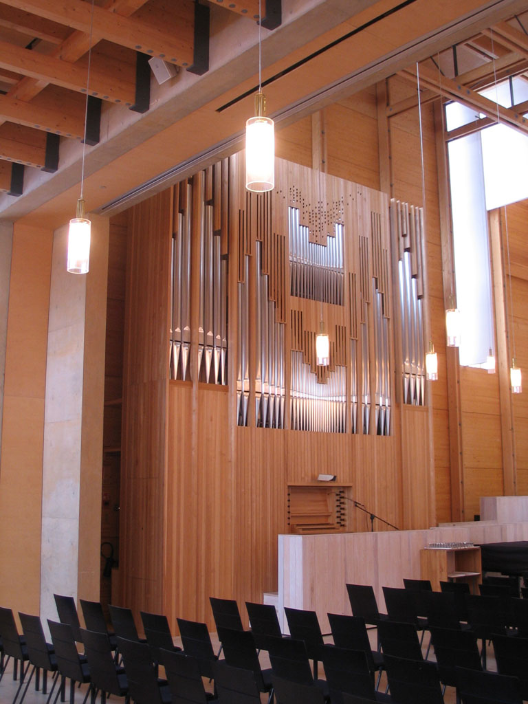 The organ and dividing plane between the front and rear halves of the sanctuary; these can be separated and the rear part used as a dining hall.