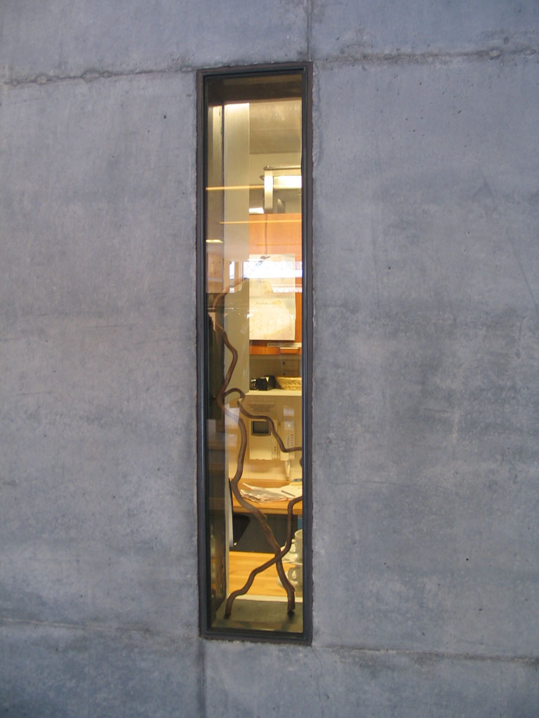 The exterior is clad with copper. Here you can see the bell tower in the foreground, separate from the rest.
