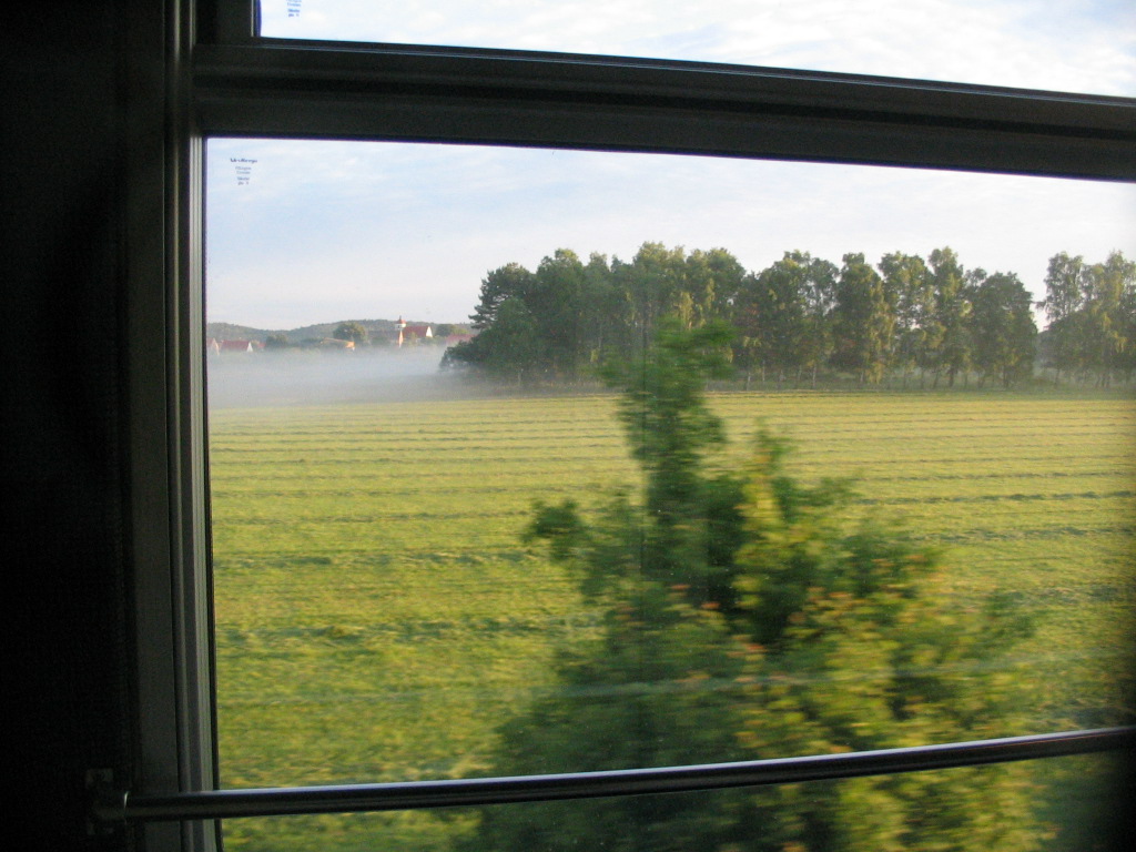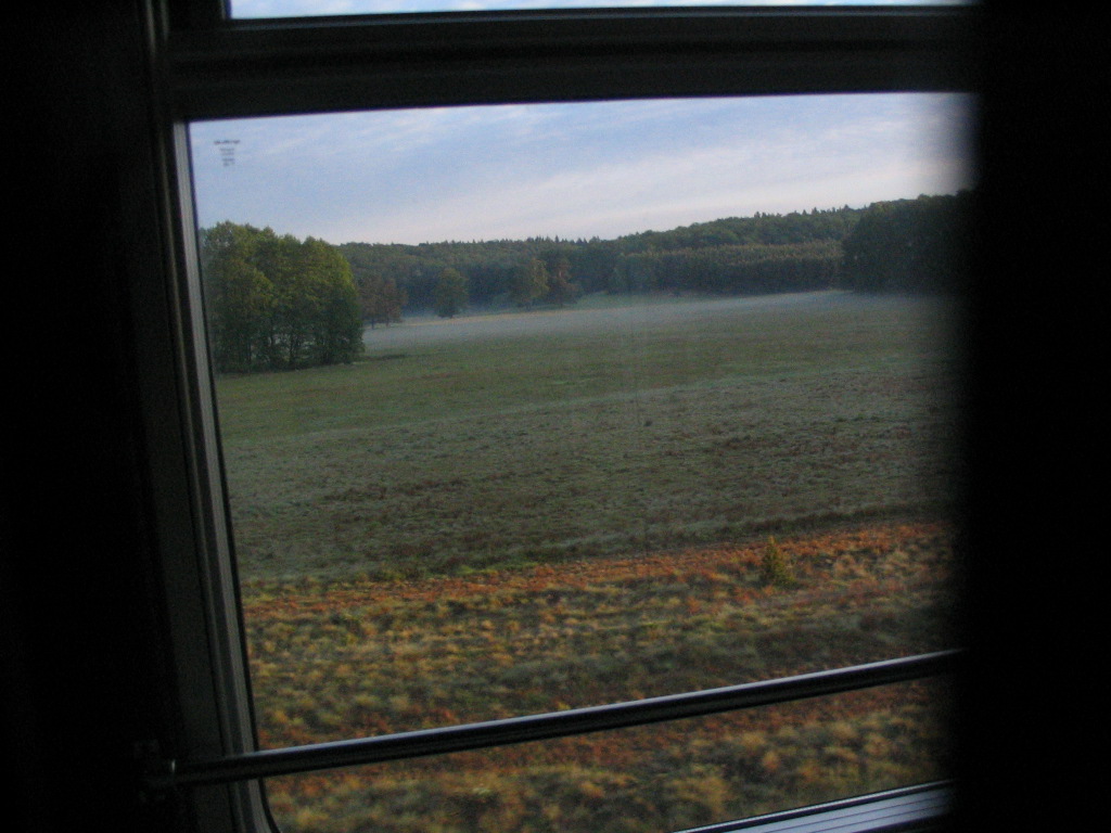 I awoke to sunny, misty views of the Brandenburg countryside, having slept through our arrival in Germany and disembarcation from the ferry (which I was sorry to have missed, but I was not sorry to have slept).